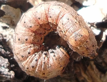 Daño Nocturno: Las larvas son principalmente nocturnas y pasan el día escondidas en el suelo, bajo la hojarasca, o en la base de las plantas.
